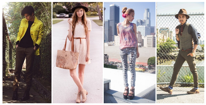 - Кеды. Кеды являются самым важным атрибутом одежды хипстера. Они могут иметь желтый, зеленый, оранжевый и другие яркие цвета. Лучшими считаются конверсы (Converse), но не возбраняются модели иных марок. Также хипстеры носят слиперы, лоферы, топсайдеры, дерби, броги, оксфорды, дезерты, теннисные туфли, эспадрильи, мокасины. Девушки часто выбирают обувь на массивных каблуках или платформах.